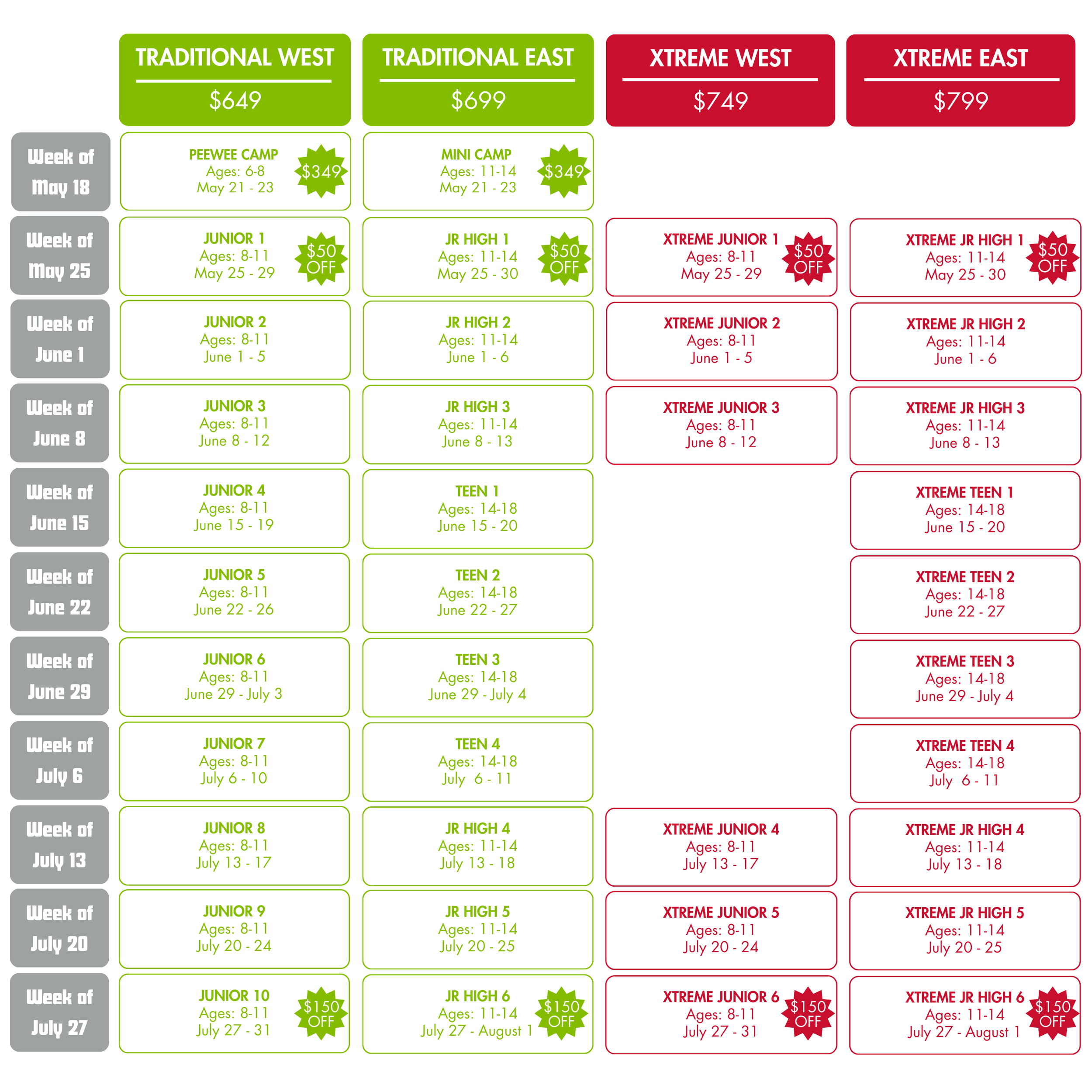 Registration for Summer 2026 goes live on Saturday, February 28 at the following times…